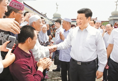 习近平强调,宁夏信仰伊斯兰教群众比较集中,做好民族工作和宗教工作非常重要。要加强民族团结进步教育,使各民族都牢固树立汉族离不开少数民族、少数民族离不开汉族、各少数民族之间也相互离不开的思想。要加快民族地区经济社会发展,以发展促团结,以团结聚人心。要坚决贯彻党的宗教工作基本方针,依法管理宗教事务,积极引导宗教与社会主义社会相适应,引导宗教界人士和信教群众尊法守法,坚决抵御非法宗教渗透活动,促进宗教和顺、社会和谐。