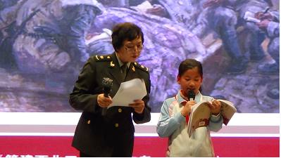 然后,五年级的张博一同学给大家讲了《半桶蜂蜜水》的故事,带着大家重温了阅读之旅,回顾了阅读红色经典中的点滴感动。在这种氛围下,学生代表李皓韵同学宣读“弘扬长征精神”倡议。从孩子们掷地有声的宣读中让在场的来宾感受到了铿锵有力的号召。相信同学们会牢记使命,弘扬长征精神,为实现中华民族伟大复兴的中国梦努力奋斗!