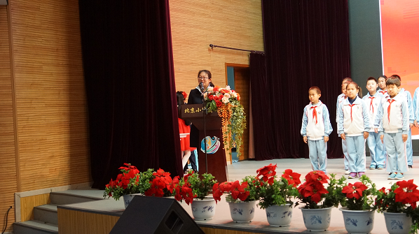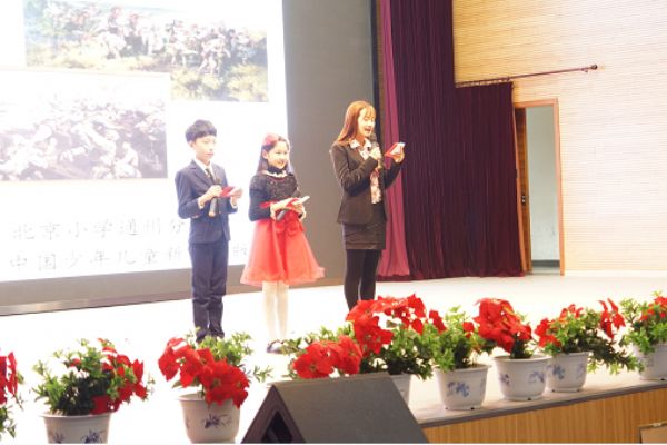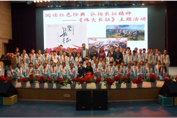 2016年10月21日下午,值长征胜利80周年之际,北京小学通州分校携手中国少年新闻出版总社、中国少年阅读大世界举办了“阅读红色经典 弘扬长征精神”活动。通州区关工委副主任何惠英、通州区团教工委副书记朱宇、教委小教科干部韩晓峰、团中央少年部宣传教育处处长孟利、《伟大的长征》主编姜廷玉、《伟大的长征》作者李慧琴、中少总社社长李学谦、中少总社图书中心副总监缪惟、北京小学通州分校校长刘卫红出席了此次活动。