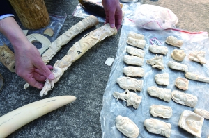 2月27日,福建莆田森林公安民警清点扣押的象牙制品(如图)。