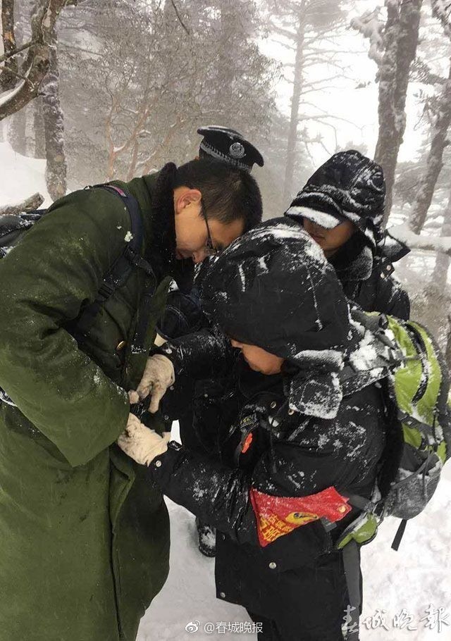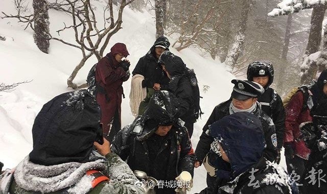 经过近6个小时艰苦救援,9日13时25分,搜救组在苍山中和峰大黑顶附近海拔3700米处找到遇险受困人员。受困人员意识尚清醒,但身体虚弱疲劳、局部冻伤、体力透支、精神紧张,搜救组及时采取为其补给姜糖水和食品、添加保暖衣服等措施实施应急救助。