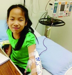她在信中说,10年前,她与丈夫在贵州省黔东南州社会福利院收养了一名年仅1岁且患有乙型地中海贫血症的女婴,并取名Hosanna。转眼间,今年春天,爱女就要过11岁生日了,但Hosanna依然虚弱,至今已接受了192次输血,每晚要靠打针维持生命。现在,他们急需帮女儿找到在贵州的亲人。因为,唯一能挽救孩子生命的办法是,用她兄弟姐妹的骨髓给她做骨髓移植手术。但他们仅有的线索,是当时孤儿院给孩子起的名字——陈福佩,来自贵州省天柱县。