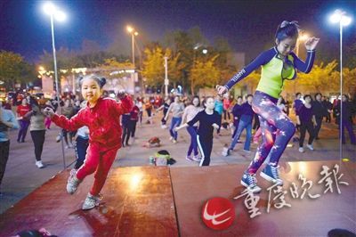▲静静和洪双双为上百市民领跳广场舞