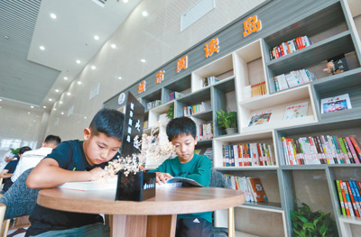 日前,宁夏银川市民在城市阅读岛内阅读心仪的书籍。