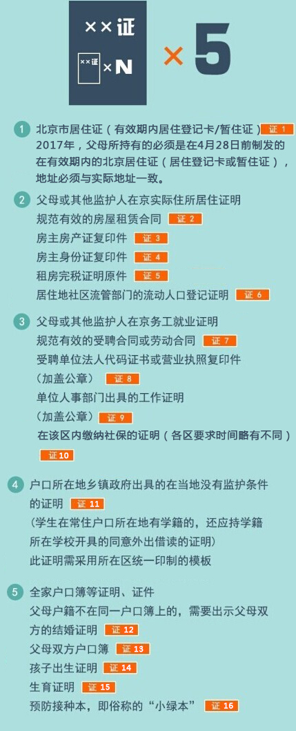 2018年非京籍幼升小的家长注意啦,众所周知非京籍幼升小在北京入学需要五证方可办理借读,其中五证又隐含包括多达20多个相关证明,先来了解下~