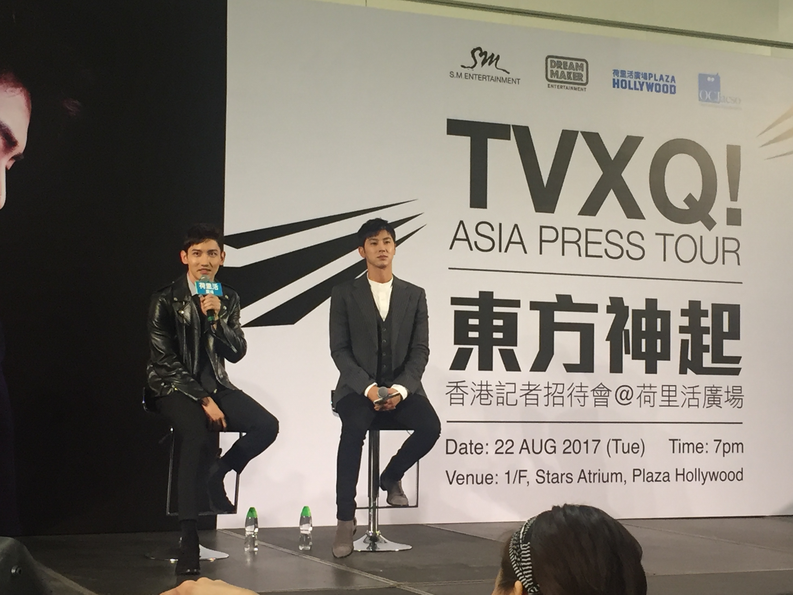 记者会尾声,两人更表达了想要对粉丝说的话,允浩说知道很多粉丝一早就到现场很辛苦,也见到很多记者传媒朋友,自己非常开心,甚至无法用语言表达。“可以这么近距离和见面,真的觉得特别开心和感恩”,他还请大家留意9月25日自己的演唱会,还提到9月29日max也将有自己的solo。