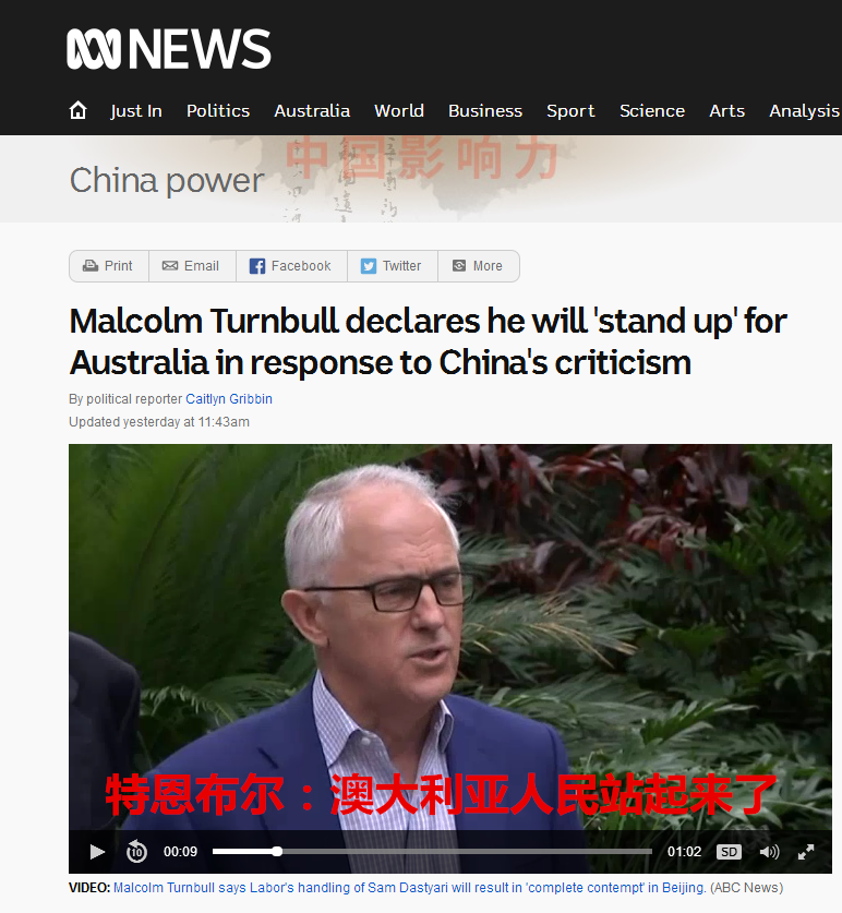 最近一段时间,澳大利亚部分政客频繁发表对华不友好言论,总理特恩布尔还用中文喊出 “澳大利亚人民站起来了”。这些话在中国网民听来比较刺耳,记忆也犹新,这或许是澳大利亚能够在这项调查中“登顶”的原因之一。