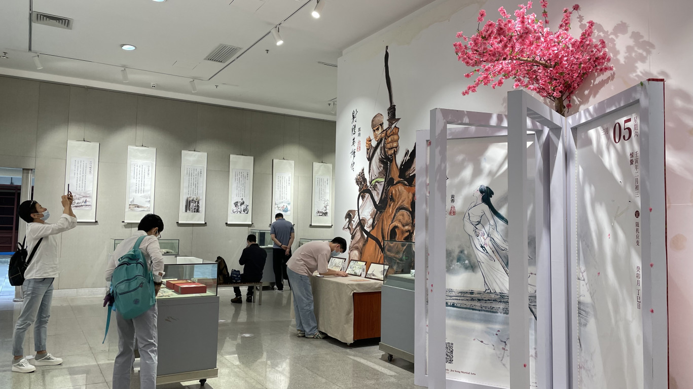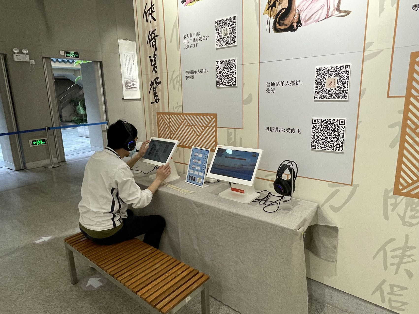 展览现场最热门的打卡点,是金庸作品相关印章介绍和盖章体验。用手机扫码,还可以收听省立中山图书馆馆藏金庸作品电子资源,感兴趣的朋友还能现场体验有声书录制,亲身演绎武侠传奇。