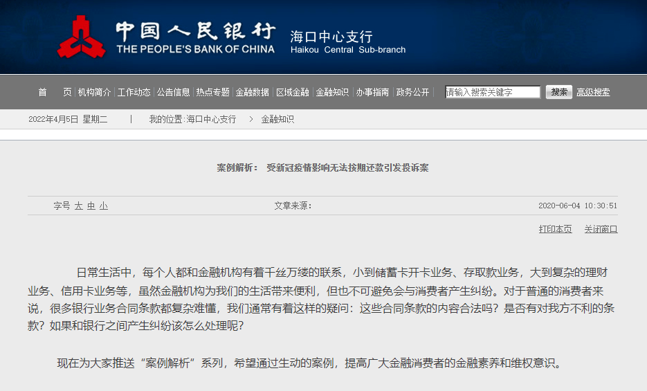 中国人民银行官网曾公布一案例,2020年2月10日,鲍某致电某省12363呼叫中心称,其在G银行的信用卡还款日是2月5日,因为受疫情影响暂时失去收入来源,无法按时还款。