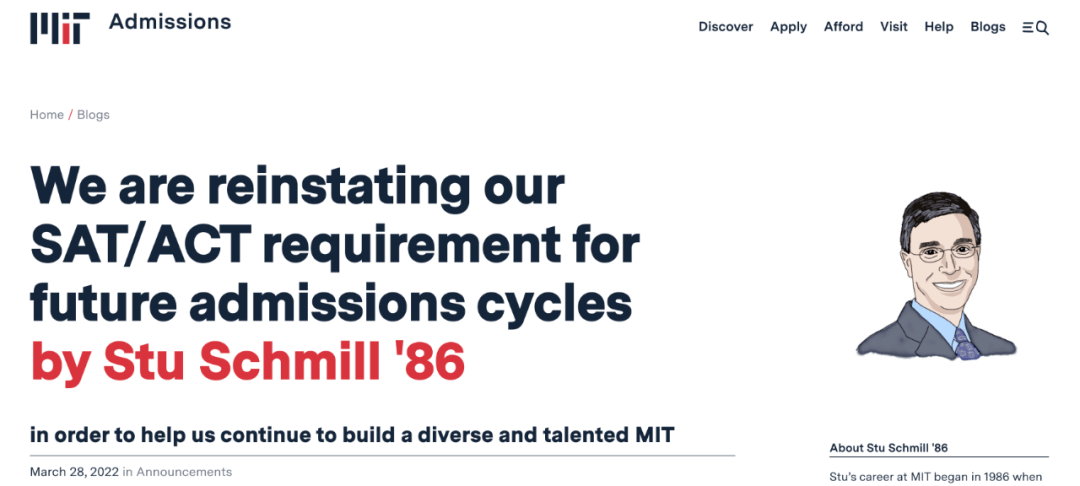 麻省理工学院表示:「青少年疫苗的可用性降低了面对面教育活动的健康风险,而免费校内 SAT 的扩展和即将推出的数字 SAT 增加了参加考试的机会。鉴于这些测试发挥的关键作用,在我们决定在可预见的未来恢复我们的 SAT/ACT 要求。」