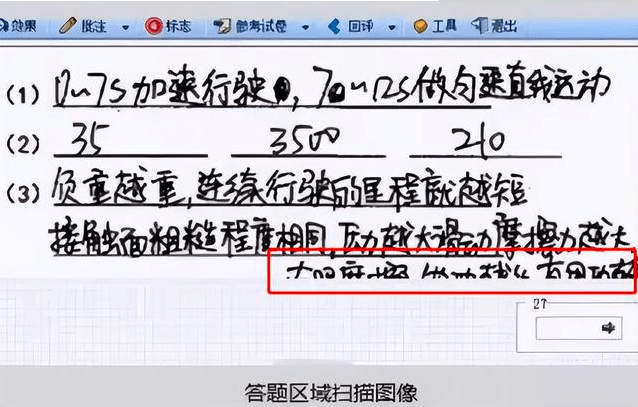 每一位老师只负责一道题目的批改,因此屏幕上显示的只有一道题的答题框,所以在做题的时候,如果超出答题框,计算机是扫描不出来的。