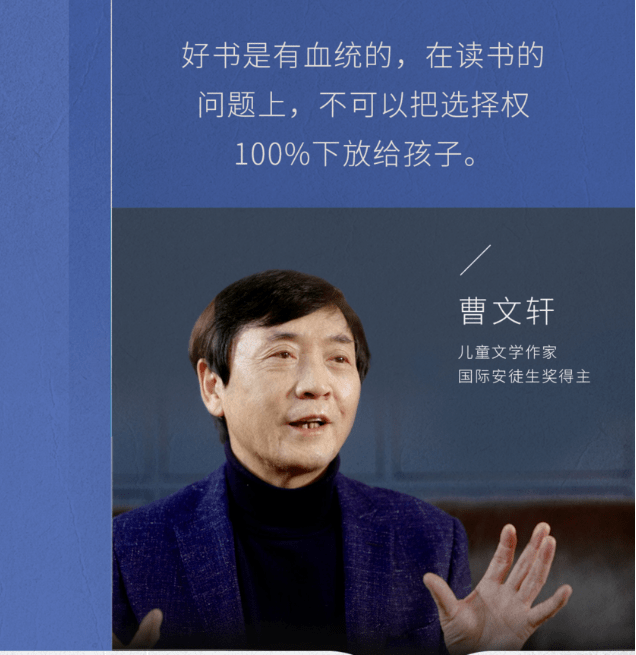 在曹文轩老师看来,好书是有血统的,在读书的问题上,不能将选择权100%下放给孩子。同时,图书一定有选择的问题,我们在阅读一本书之前,首先要看这本书是否具有正当的道义观;是否具有培养小孩审美趣味的功能;是否能够培养孩子悲悯情怀。
