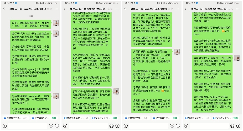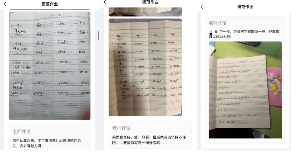 除此以外,防疫期间,因作业多在家中完成,家长也不自觉地被纳入为学生英语作业评价的评价主体。越来越多的家长开始关注学生的学习,对学生在家的写作业态度、时长以及完成方式等进行评价。我们“一对多”的评价在另一方面也肯定了家长们作为“助评者”的努力与付出,使家校沟通更加紧密。