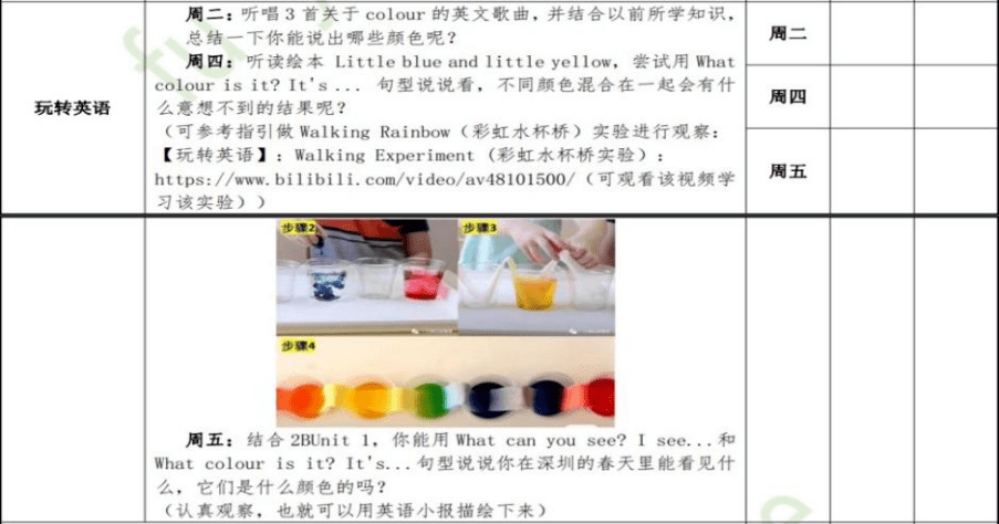▲二年级“彩虹水杯桥”实验居家学习指引