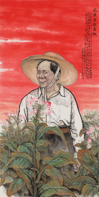 为纪念毛主席视察河南襄城县六十五周年,画家刘子默老师缅怀对伟人的崇敬之情,创作中国画《毛主席在襄城》。这幅作品以烟田为背景,伟人脸上洋溢着喜悦,天空披满彩霞,与人物前面烟草花呼应,烘托出伟人对未来的发展充满了希望!