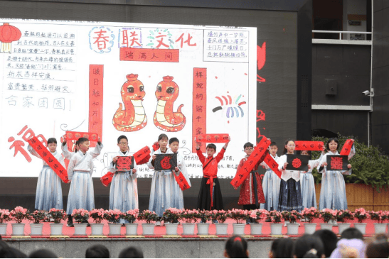成都市龙祥路小学的学子们通过视频了解十二生肖中蛇的文化含义,在书法展示里感受蛇与艺术的交融,通过情景剧、相声等形式生动演绎蛇年故事并分享感悟。开学典礼以蛇蜕皮寓意成长蜕变,激励学生在新学期勇攀高峰,用智慧与勇气书写新篇章。