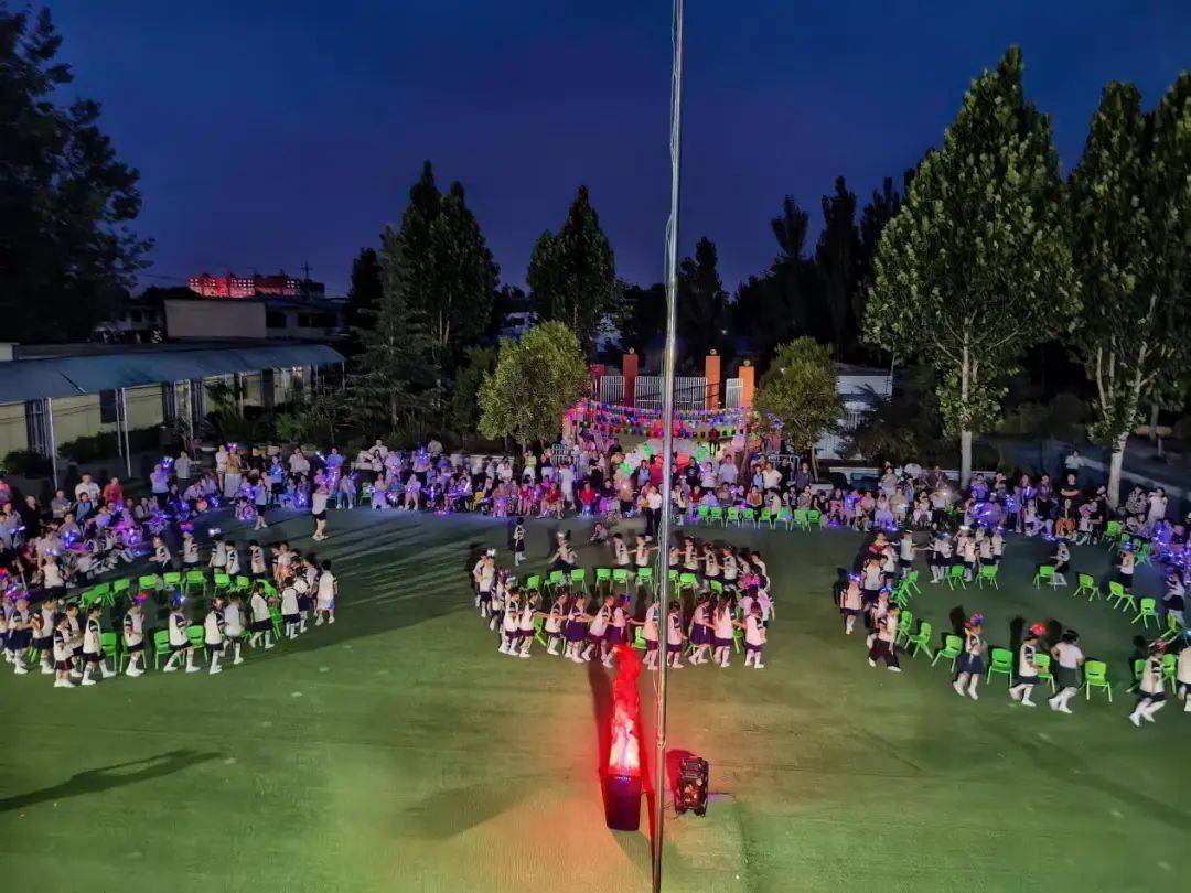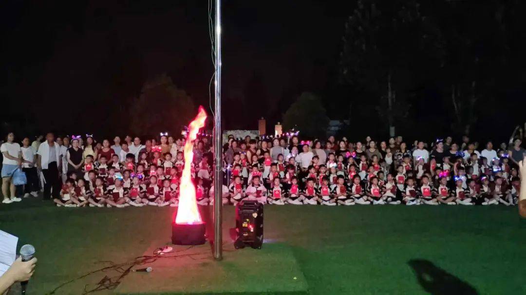 当夜幕降临,典礼迎来了别具一格的“星光篝火晚会”环节。象征温暖与希望的篝火瞬间点燃了全场的热情,在欢快的音乐律动中,孩子们与家长手拉手围成圆圈,跟随着节奏明快的旋律尽情舞动身体,欢声笑语响彻夜空。紧接着的亲子趣味活动将气氛推向高潮,家长与孩子在亲密互动中体验合作的乐趣,共同珍藏这份独特而美好的毕业记忆。
