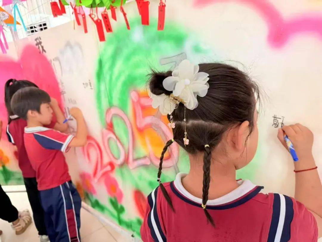 签名墙前,孩子们踮起脚尖,认真书写自己的名字。那些充满童趣的字迹,如同刻在时光年轮上的刻度,标记着成长的足迹。此刻的郑重落笔,是对幼儿园时光最深的眷恋, 也是对未来最纯真的期许。