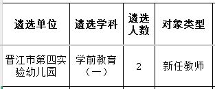 根据《2025年秋晋江市部分学校面向全市在编及新任教师遴选的通告》精神,经研究,同意晋江市第四验幼儿园面向全市公开遴选公办教师。现将公开遴选公办教师相关事项明确如下: