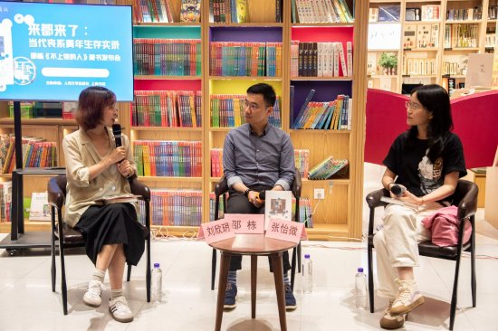 6月8日晚,该书的首场新书发布会在上海书城福州路店举办。本场活动以“来都来了:当代丧系青年生存实录”为主题,邀请了复旦大学中文系副教授、作家张怡微,上海师范大学教师、青年批评家刘欣玥,本书作者邵栋作为嘉宾,并由刘欣玥兼任嘉宾主持,一起围绕新书《不上锁的人》畅谈社交网络时代人的情感的变迁,以及当代青年人的生活处境和精神状态。同时,本场活动还在人民文学出版社视频号等平台进行了直播,有近万人观看,三位嘉宾与读者进行了真诚的互动与分享。