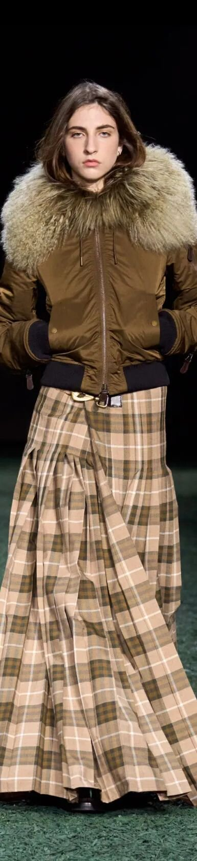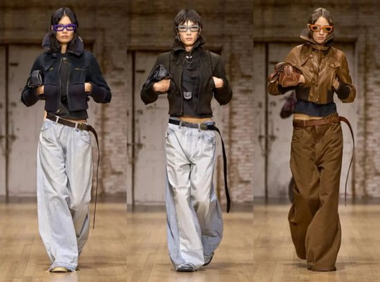 近年来,飞行夹克在女装中的崛起更值得关注。Miu Miu用短款设计搭配百褶裙,制造“刚柔并济”的少女感;Alexander McQueen则将飞行夹克与解构手法结合,夸张的肩部与收紧的腰线让它具备雕塑感。