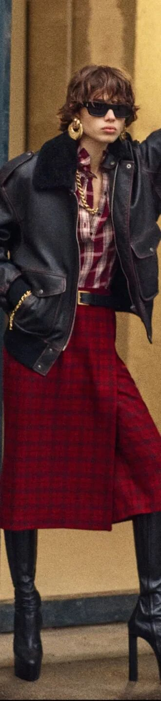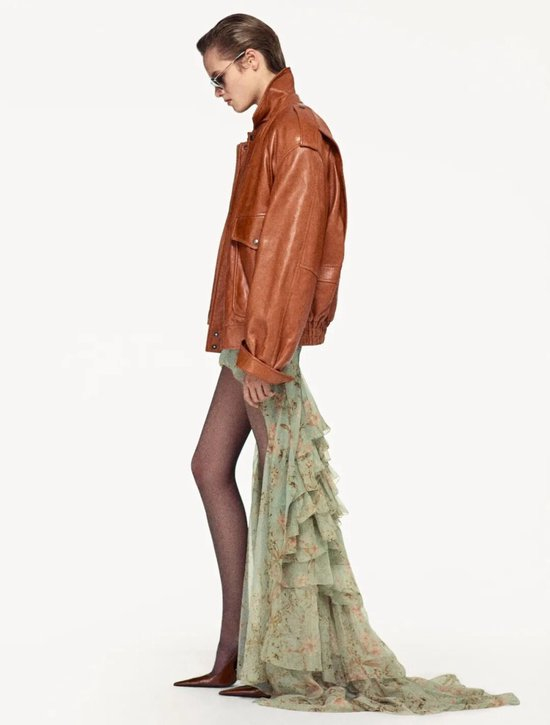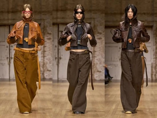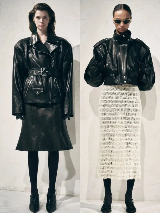 作为2025年的主打款式,飞行夹克在各大品牌的演绎下焕发新生。Khaite推出轻质麂皮款,Saint Laurent以宽松皮革搭配做旧质感,Coach的短款窄肩设计则赋予飞行夹克更时髦的魅力。