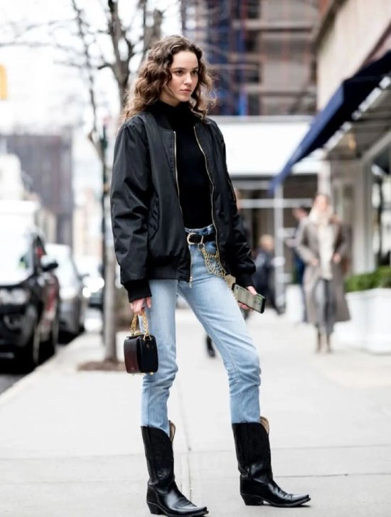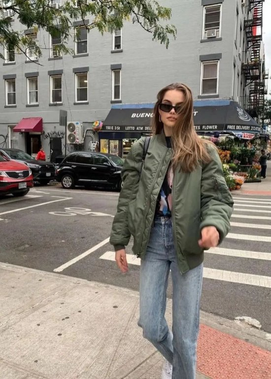 最经典的柔与刚平衡,是宽松飞行夹克配上紧身打底与高腰牛仔裤,营造上宽下窄的比例。如果想要更具女性气质,不妨将飞行夹克与连衣裙结合,让丝绸、雪纺等轻盈材质与尼龙外套进行碰撞。