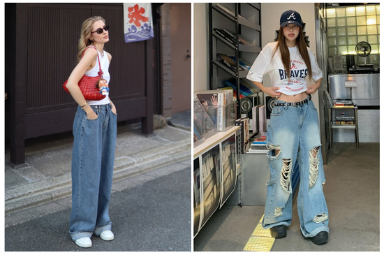 最基础的白背心和白T恤也能穿出时尚感,阔腿牛仔裤本身率性利落的线条,能拉长腿部比例,再与极简的基础款上装组合,不仅经典耐看,更在简约中融入了一份不羁的态度,是永不过时的effortless chic。