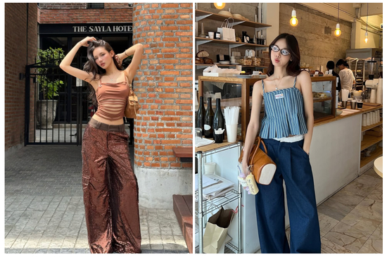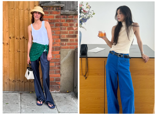 吊带上衣与阔腿裤的组合,是夏日简约高级的代名词。大胆展露腰部线条,为造型增添“呼吸感”,视觉上也更显清爽。阔腿裤可选飘逸的拖地长款,垂坠的裤腿延伸腿部线条,步履间尽显帅气洒脱。