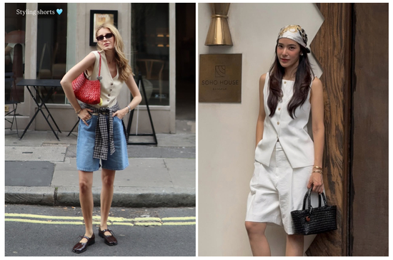 马甲在夏天可以尝试单穿,下身搭配一条廓形利落的短裤,是兼顾高级感与日常性的满分组合。马甲的利落线条与短裤的宽松形成对比,上身效果也洒脱随性,松弛感十足。