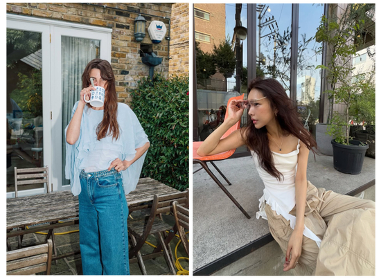 亲肤透气的欧根纱和镂空设计,自带朦胧轻盈的呼吸感。选择袖口宽松和衣长短款设计的上衣,薄如蝉翼的面料温柔地笼罩上身,营造出松弛自在的慵懒感,也很自然清凉。