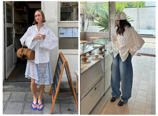 Oversize衬衫上身即能穿出慵懒的时髦感,即使搭配同样宽松的牛仔裤或飘逸半裙,衬衫自身利落的轮廓也能为整体注入结构感,让造型和谐不拖沓,带来帅气又清爽的双重魅力。