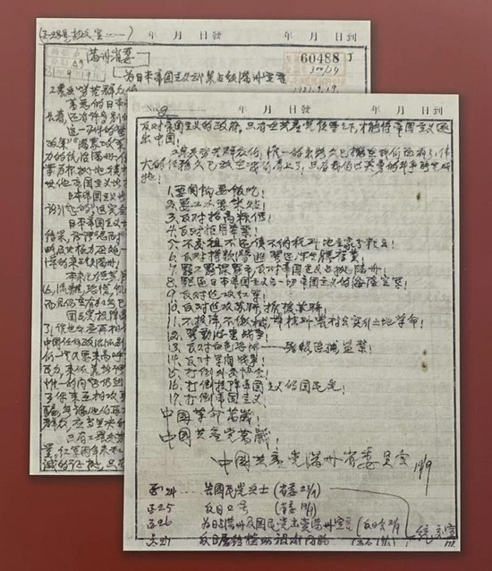 杨靖宇创作的《东北抗日联军第一路军军歌》,唱出了抗联将士们永不屈服坚持战斗的理由:“夺回来所失的我祖国,解放那牛马亡国奴生活”。来源:杨靖宇烈士陵园暨东北抗日联军纪念馆