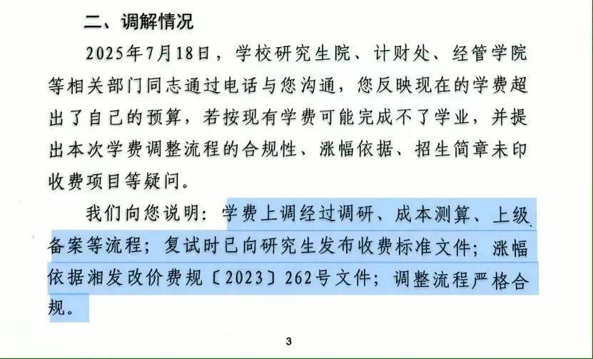 中南林业科技大学经管学院负责人解释:“成本的上升主要是教师的薪资课酬和实验室设备的采购等,配套的培养成本在增加。”该校表示,学费调整不仅仅是基于成本,还参考了同类型学校的收费标准,是一种“市场化的定价逻辑”。