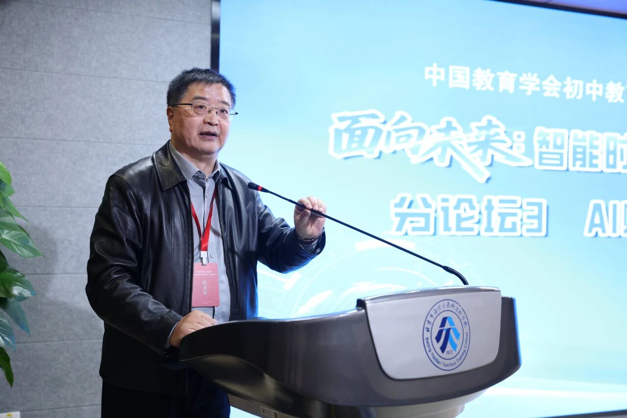 中国教育学会初中教育专业委员会学术委员会副主任委员、西北师范大学教育学院教授李瑾瑜,充分肯定了本论坛的实践做法与经验,围绕人工智能与教师的关系,强调在技术与教学融合的过程中,要肯定教师知识传授的角色,警惕“非此即彼”的思维方式;要肯定知识是承载能力、思维、精神与美德塑造的基础,警惕“轻视知识”的思想;要关注教师专业发展的核心是人,警惕“过渡关注技术”的实践导向,引导实践层面始终保持理性思考、回归教育本质。