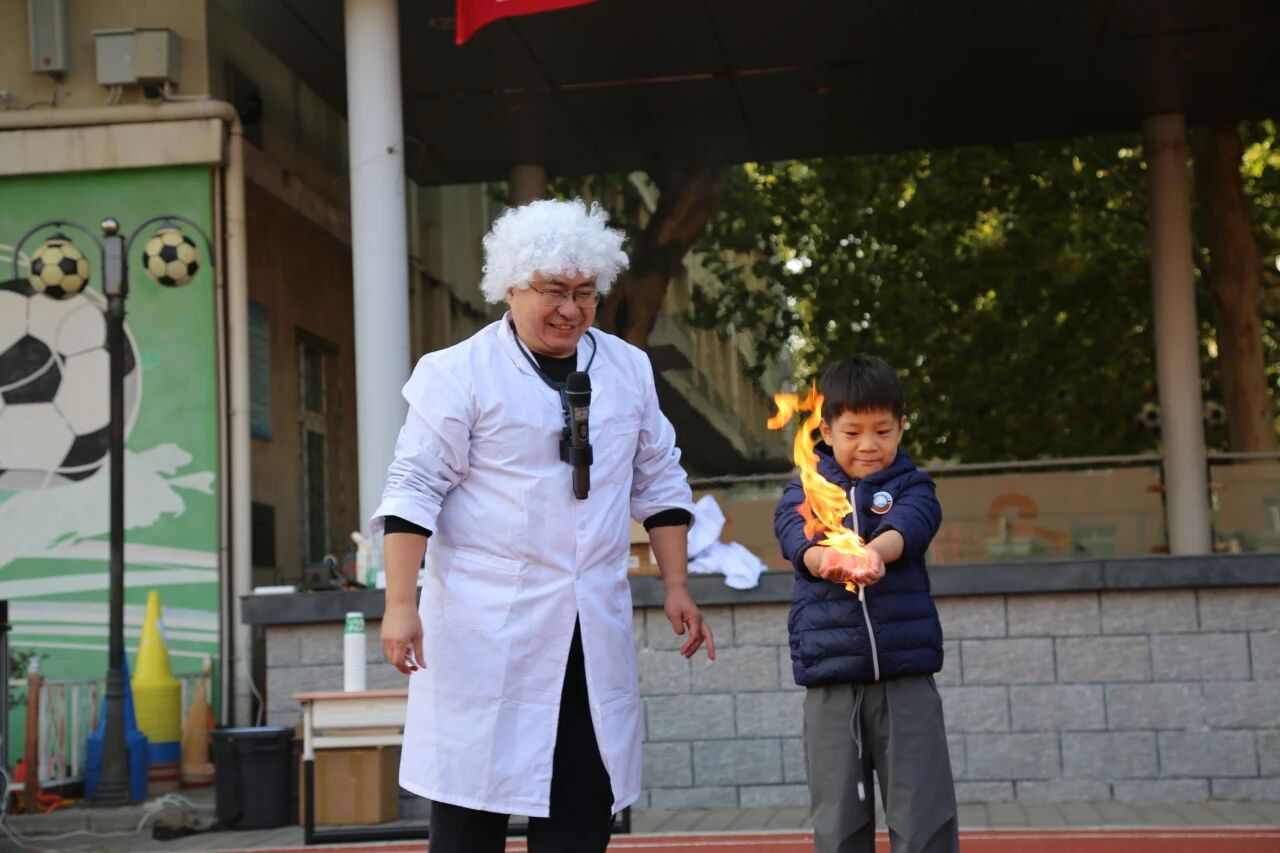 紧接着,开幕式上,一场别开生面的科学“魔法秀”震撼登场!刘永辉老师率先带来了令人惊艳的“火焰掌“表演”!全场惊呼连连,掌声雷动。随后,他又演示了经典的“马德堡半球”实验”,直观地向同学们展示了大气压的巨大力量。