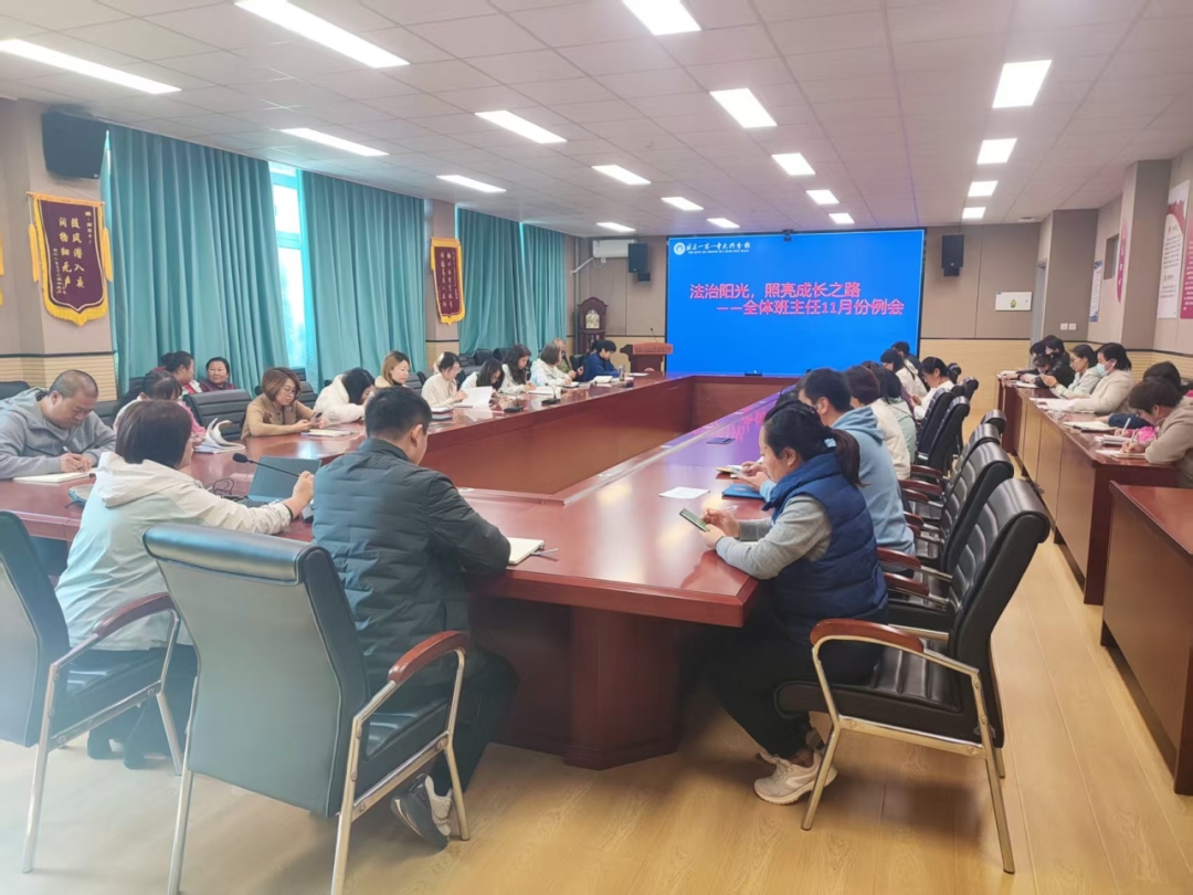 2025年11月3日,北京一零一中大兴分校11月份班主任例会暨班主任基本功比赛在学校中型会议室举行,全体班主任、年级德育主任以及学生发展中心全体领导出席会议。