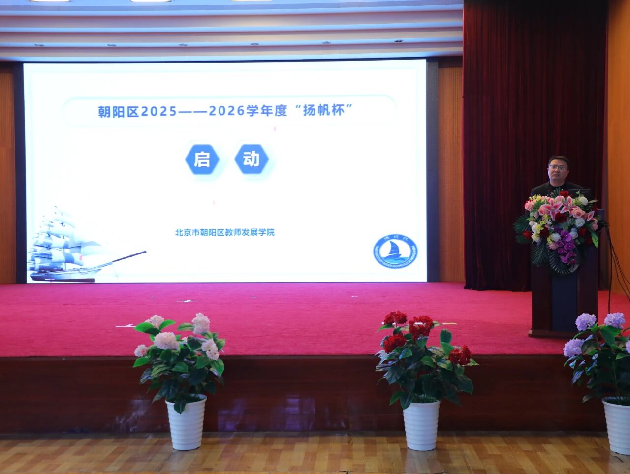 2025年11月5日下午,北京市朝阳区2024—2025学年度“扬帆杯”总结表彰暨 2025—2026学年度启动会在北京市陈经纶中学崇实分校隆重召开。本次活动以“聚力教学技能提升・赋能新师专业远航”为主题,采用“线下主会场+线上直播”形式举行。教师发展学院党总支书记刘强、副院长于永强、孙卫华,北京市陈经纶中学崇实分校校长高殿军,教师发展学院教师专业发展中心主任张东及全体培训教师、中小学校培训管理者、工作三年以内的新教师等共计1000余人参加了活动。