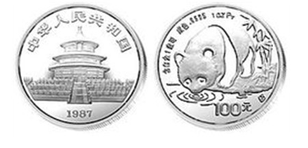 1987年中国首枚熊猫1盎司铂币发行。使中国贵金属纪念币的化学元素材料又增加了新的成员。1988年中国第1枚错币诞生。第15届冬奥会27克滑雪银币文字错写为“16”届。 同年,12盎司双龙生肖精制银币获得世界银币大奖赛“最佳银币奖”。此币由上海造币厂曾成沪设计雕刻。 1989年中国首枚熊猫1盎司钯币发行至此,中国贵金属纪念币共有4种金属材料问世,即金 (Au)、银(Ag)、铂(Pt)、钯(Pd)。