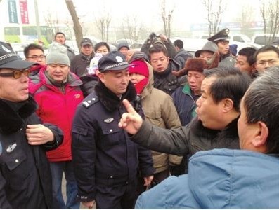 前天上午10点多,记者在该小区看到,小区西门外通顺路上,200多位业主将该路南向北路段堵住。现场多辆警车停在路边,数名警察正在劝说业主,随后业主们散去。