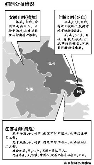 此前,上海和安徽发现3例人感染H7N9禽流感病例。其中上海两名患者抢救无效死亡。安徽省滁州市患者韩某正在南京抢救。