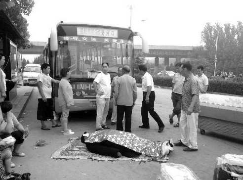 当天下午,杜家人将老人的尸体抬上公交车,向公交公司讨说法。