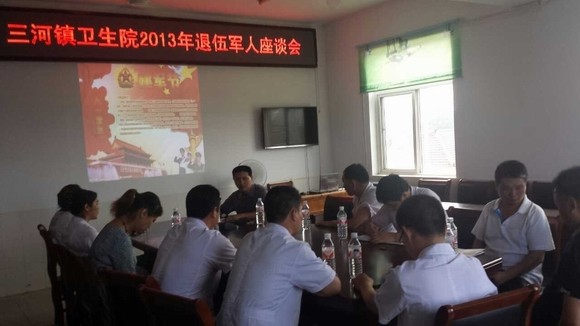 为了迎接建军86周年的到来,7月31日下午,江苏省洪泽县三河镇卫生院在该院门诊三楼会议室召开了庆祝 “八一”建军节退伍军人座谈会。该院领导班子成员、退伍军人代表及院工会等相关职能部门负责人共20余人欢聚一堂,庆贺节日,共叙鱼水情深,齐谋卫生院发展。