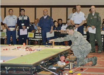 美军三泽基地、警察、消防员和六所村等参加了本次演习。相关人员使用地图和模型,确认了情报收集、灭火、展开救助活动、设定警戒线等初期应对措施的程序。