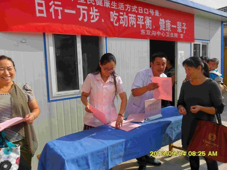 今年9月1日是我国第七个“全民健康生活方式日”,今年的口号是“日行一万步,动静两平衡,健康一辈子”,主题是“和谐我生活,健康中国人”。 为普及健康理念、宣传健康生活方式,9月1日,江苏洪泽县东双沟中心卫生院组织医务人员走上街头举办“全民健康生活方式行动日”宣传活动。