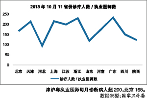 同时,北京看病同样难。在2013年10月,每一个北京执业医师要看168个病人。
