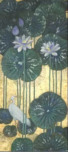 金色荷塘(布面)190x86cm