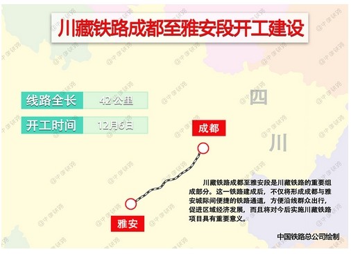 川藏铁路成都至雅安段是川藏铁路的重要组成部分,自朝阳湖起,经名山至雅安,全长42公里。