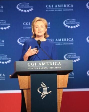 美国前第一夫人、前国务卿希拉里·克林顿出席在丹佛举行的“克林顿计划”美洲年会开幕式。