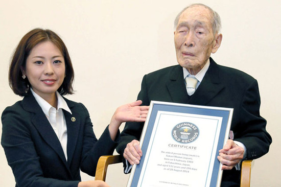 2014年百井盛被吉尼斯世界纪录公司认定为全球最长寿男性